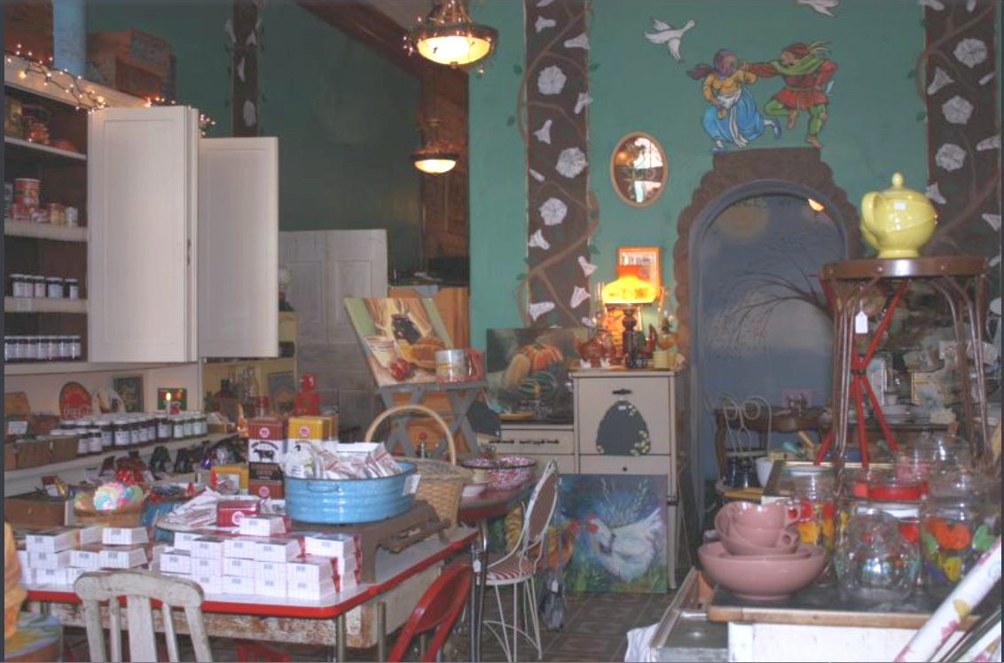 The Little Foxes is in a next-door walk-thru attached building, which exhibits artwork & paintings by local artisans, including that of Dragonfly studio instructor, Renee Sisk. The Little Foxes is our newest addition where we feature specialty foods such as Amish noodles, jams and jellies, fruit and berry butters and old fashioned candy and so much more. Vintage tins, cookie cutters, old fashioned kitchenware and farm implements as well as other antiques are displayed amongst the food items creating an old-world country store atmosphere. The Little Foxes is located in the original 1889 building that at one time housed the Brennan’s Store and later the Lanterman’s Store. The original storefront of the building has been restored and is now the entrance to the Little Foxes shop. The side of the building still shows some of the advertisement for shoes painted on the brick many years ago. |